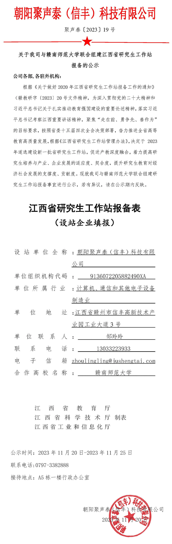 • 與贛南師范大學(xué)聯(lián)合組建江西省研究生工作站報備的公示