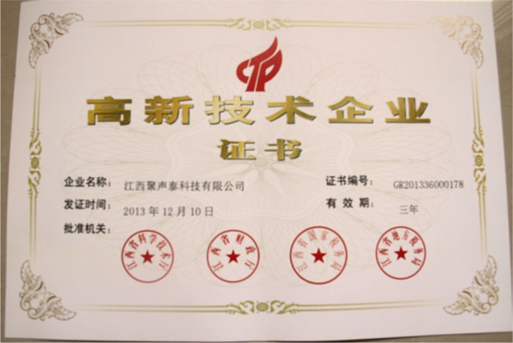 2014年3月,公司獲得由江西省科技廳、江西省財(cái)政廳、江西省國(guó)家稅務(wù)局、江西省地方稅務(wù)局聯(lián)合頒發(fā)的《高新技術(shù)企業(yè)證書(shū)》。