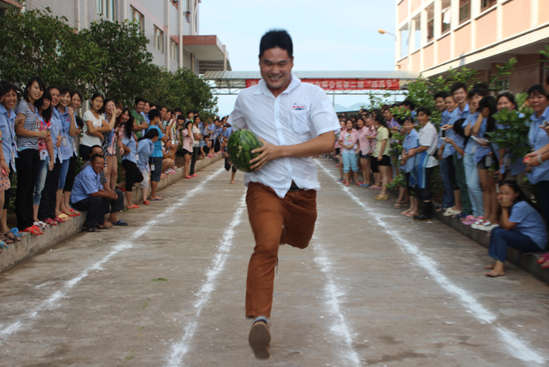 第一場(chǎng)接力賽;接力賽4人一組舉行(2男2女),共16組,每組參賽人員站在各自跑道,每個(gè)跑道存放一個(gè)西瓜(大小均勻西瓜),聽(tīng)到裁判員發(fā)出“各就各位”口令后,參賽人員蹲下身抱起西瓜,當(dāng)裁判員鳴哨后,參賽人員即可起動(dòng),抱起西瓜,沿著跑道向前方傳遞西瓜,這樣依此前進(jìn)來(lái)回,直至最后一位參賽選手越過(guò)終點(diǎn)線(xiàn)為勝組。