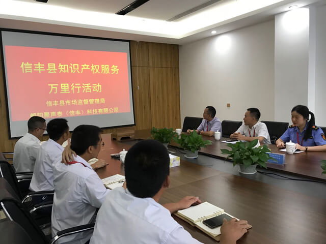7月16日下午,?信豐縣市場監(jiān)管局李少林股長的帶領(lǐng)下,巡講組來到朝陽聚聲泰(信豐)科技有限公司開展“知識產(chǎn)權(quán)服務萬里行暨專利質(zhì)量提升專題巡講”活動。